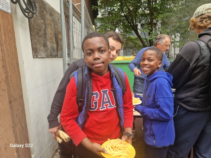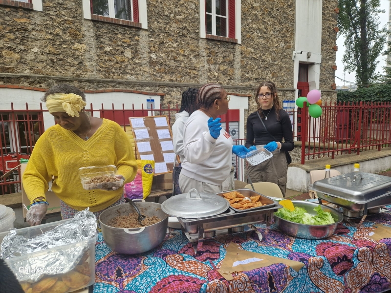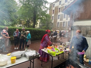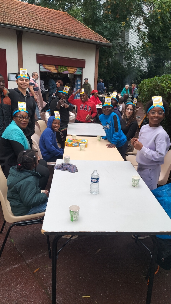 Après la messe, les bénéficiaires, les bénévoles et les paroissiens se sont réunis dans le jardin de la paroisse Saint-Hippolyte sous une fine pluie pour déguster une variété de plats cuisinés par les bénéficiaires et les bénévoles du Relais Fraternel. Les participants ont eu l’occasion de savourer des merguez, des chipolatas, des barquettes de frites, des pastels, des grillades de cuisses de poulet et du thieb au poulet (mets typiques du Sénégal), boisson froide ou chaude, animations musicales. Les enfants des bénéficiaires ont participé activement à l’animation de jeux par les animateurs du soutien scolaire.